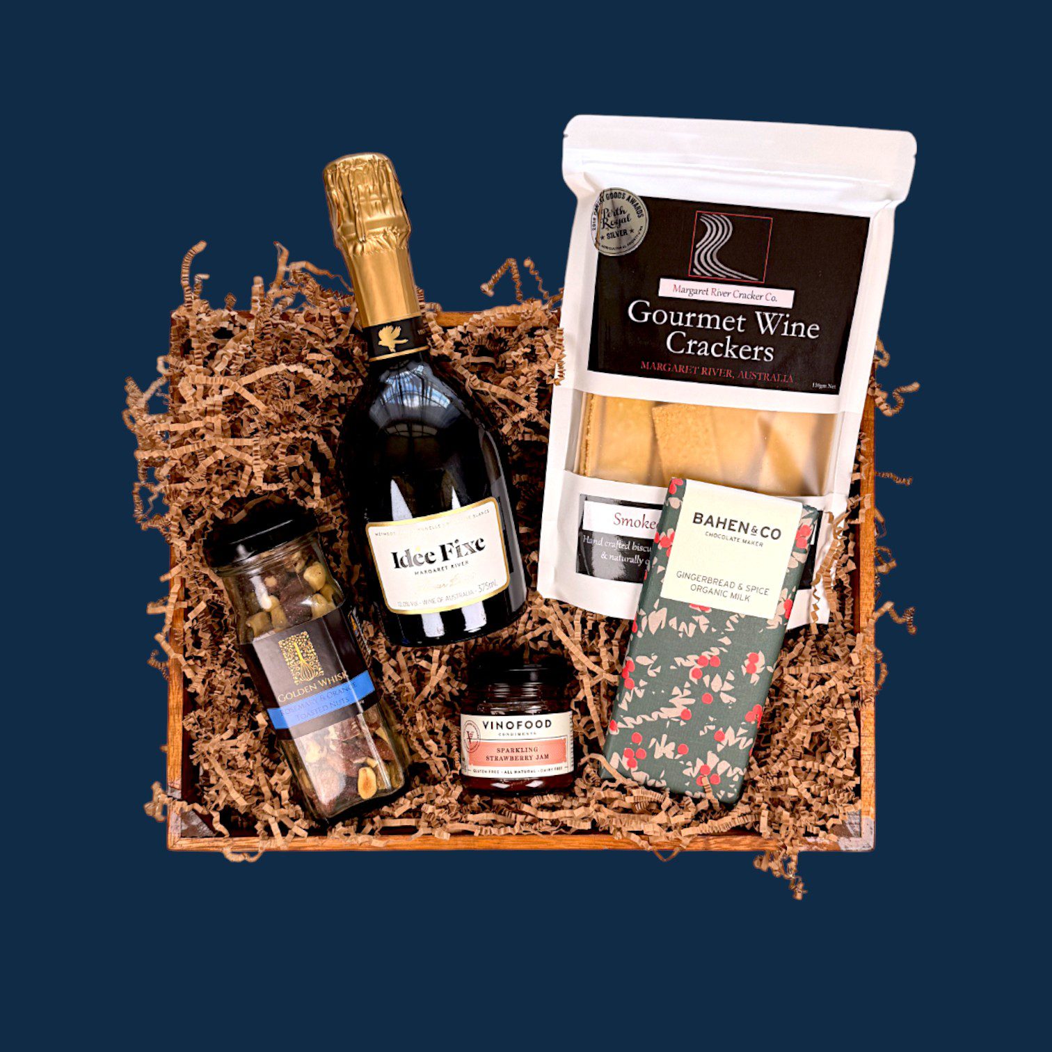 Yes, all components are crafted by local WA producers—including the Margaret River Fudge Factory, Margaret River Cracker Co., Nougat & Nice, Great Southern Groves, Paddock to Produce and Bahen & Co. – supporting regional artisan quality.